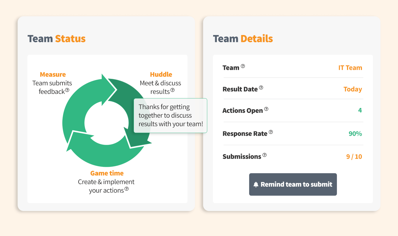 Yes. Teamgage Huddle is the cornerstone of our team engagement platform, offering you ongoing improvement and insights.